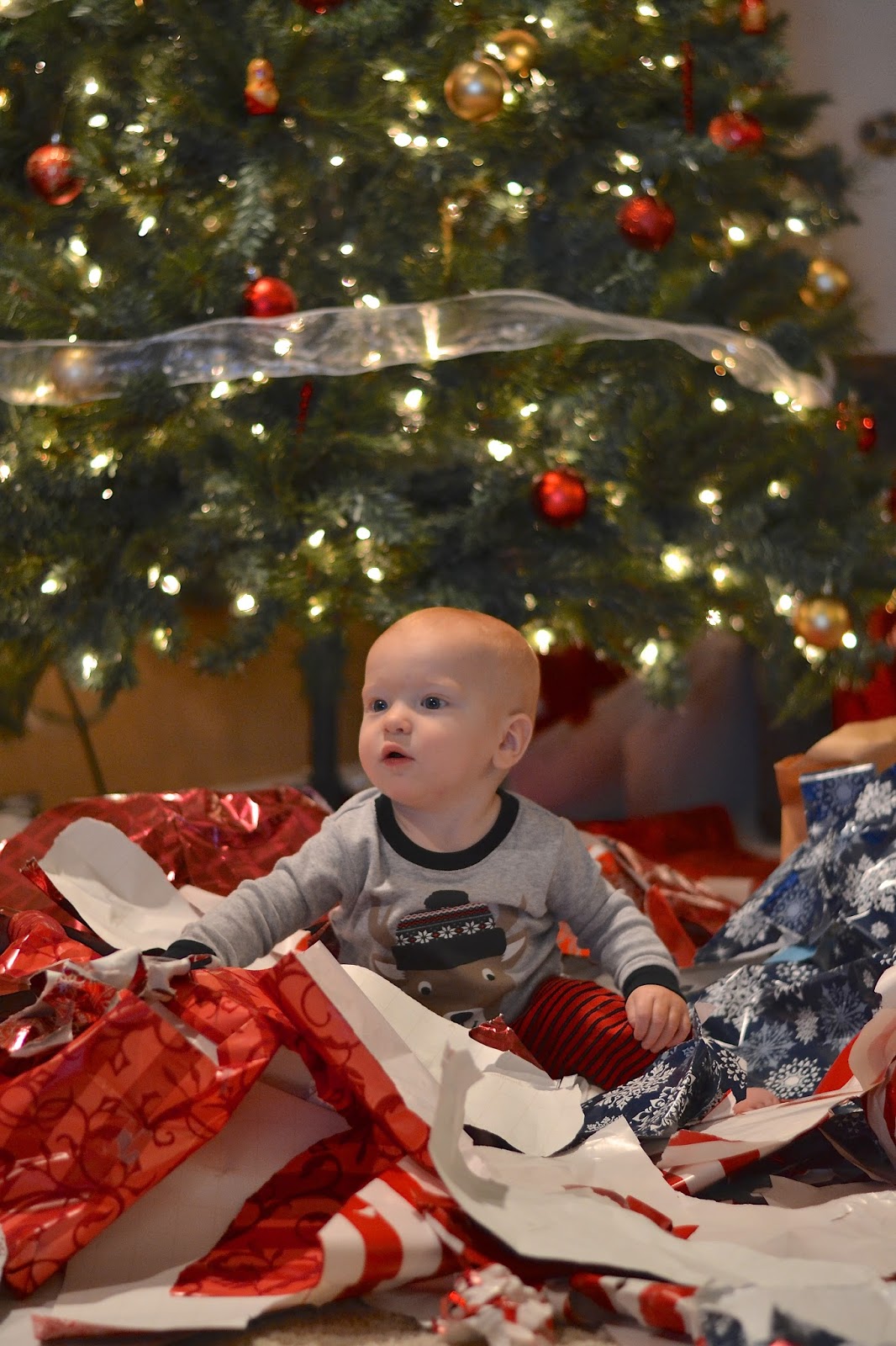 I think his favorite part of his first Christmas was the piles of wrapping paper. Silly little dude!
